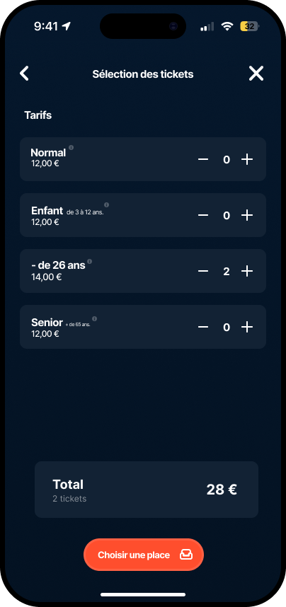 – Sélection et achats des billets
